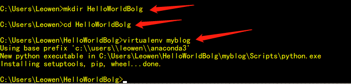 激活成功后,命令行前面会有(myblog)字样,如下